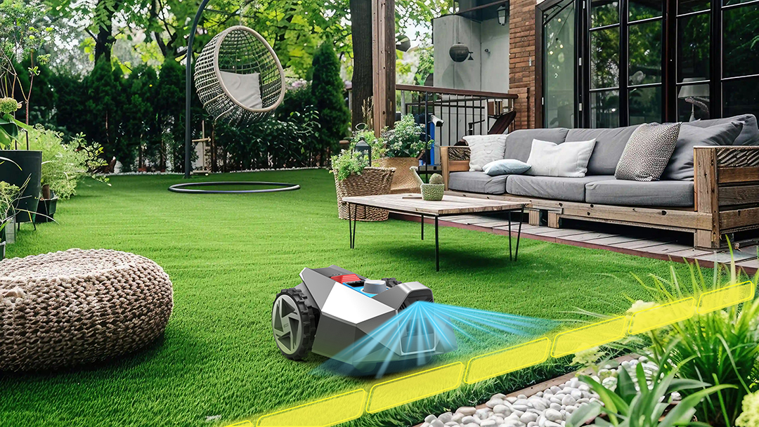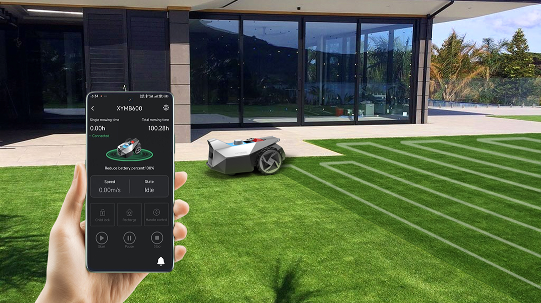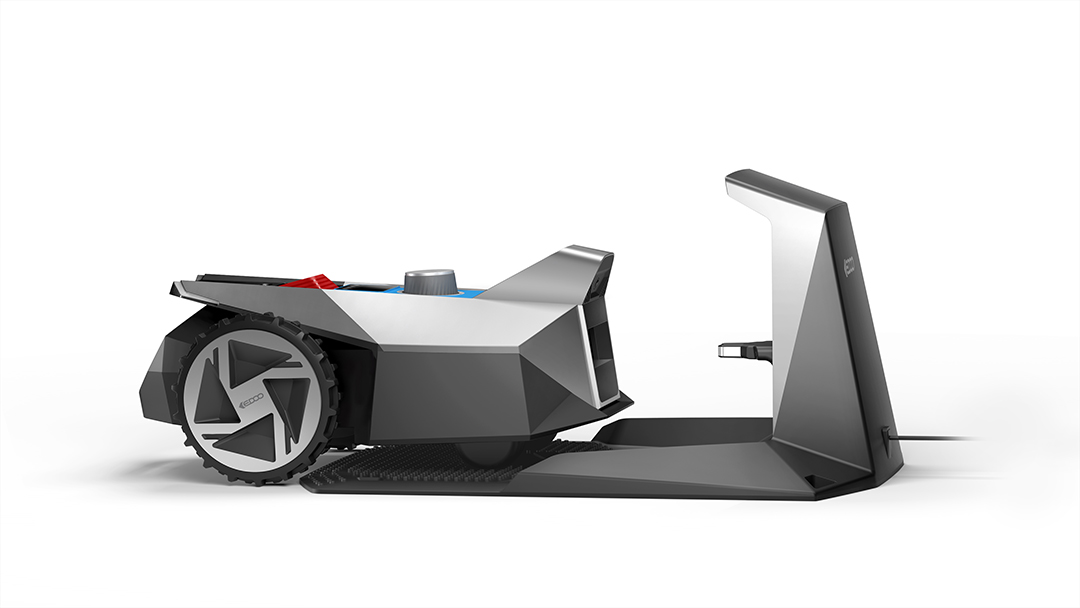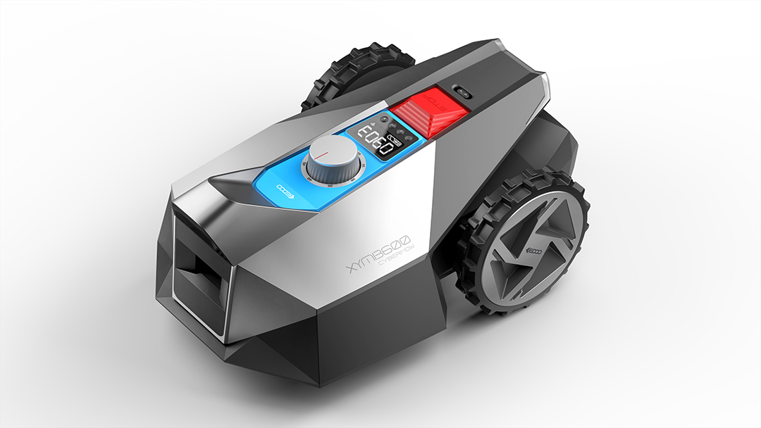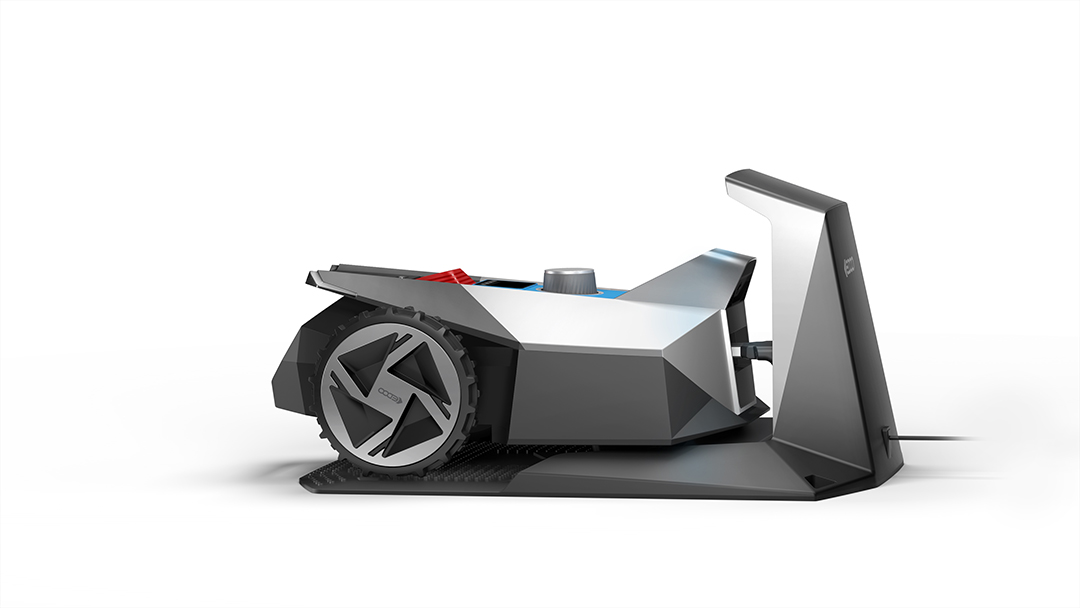 • The lawn robot’s design embraces a Cyber-inspired aesthetic with sharp lines, robust structure, and a metallic finish, complemented by a dynamic wing structure, creating a striking futuristic look and visual impact. It blends the engineering logic of mowing tools with the aesthetic finesse of consumer products, balancing structural reliability with visual sophistication to meet users’ dual expectations for functionality and premium equipment appeal. Its compact structure includes a portable rear handle, ergonomically optimized knob, and rubberized side panels for comfortable, secure handling, facilitating easy transport and daily use.